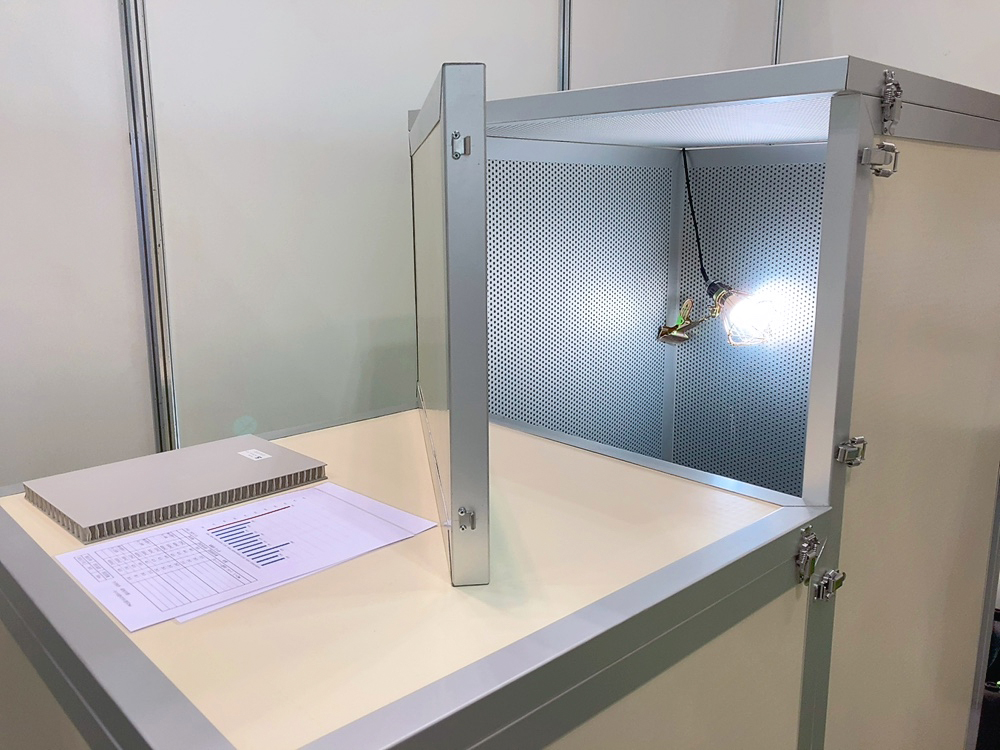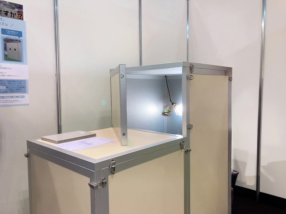弊社のブースでは脱着型防音ボックスの実物を設置し、実際に中に入って遮音性能を