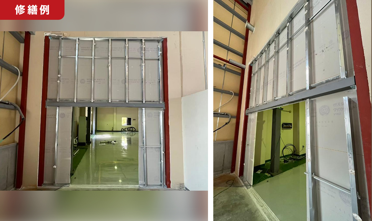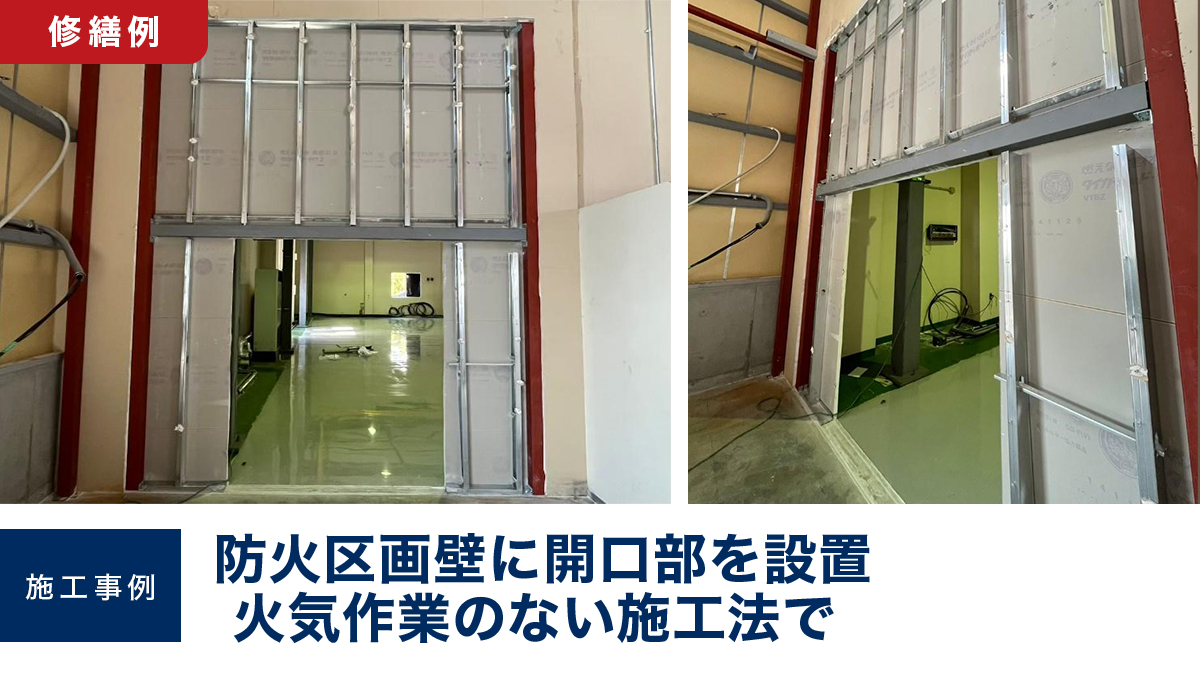 工場の防火区画壁に開口部を設置。壁内部の配線に配慮した修繕【改修・修繕工事事例】