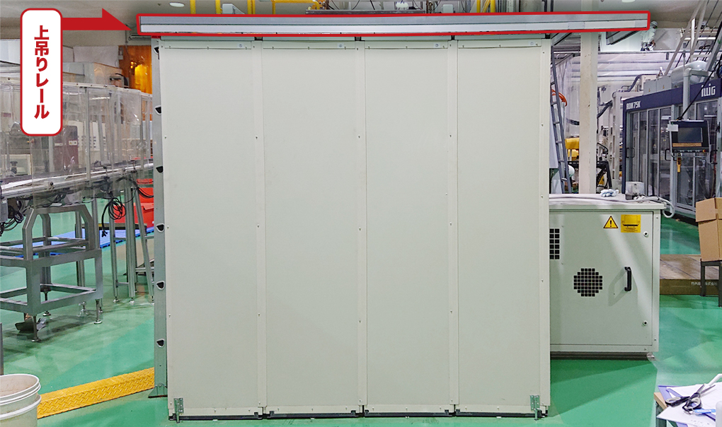 パネルは上部のレールから吊り下げられており、左右にスライドする可動式。