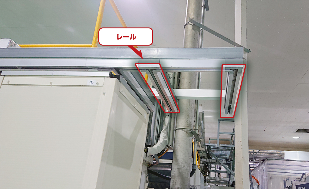 メーンのレールと接続した短いレールにパネル1枚1枚を収納できる