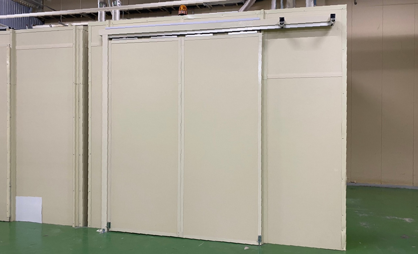 ・従来の観音開き扉を引き戸タイプへ。開け閉めも楽に行えるつくりとし、作業性や生産性を向上させた。上吊方式採用。