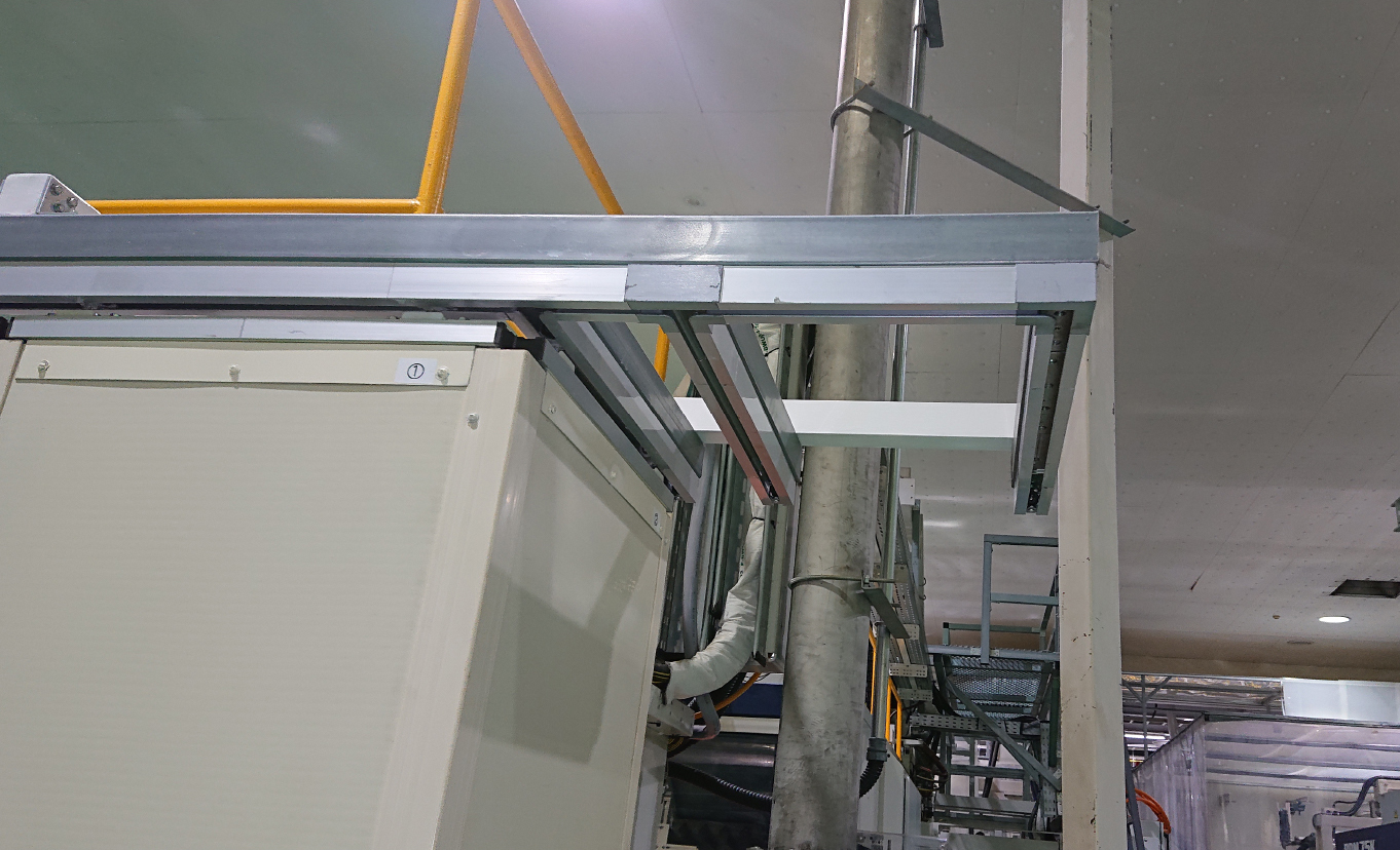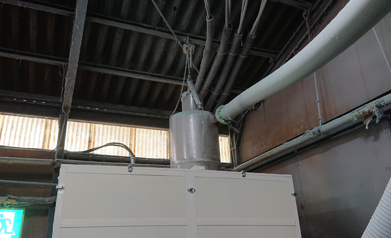 ・工場内部での作業性のほか、搬入経路も考え、最小限の大きさで軽くし、一人でも搬入できるように、ばらした部材を組み立て方式で設置した。