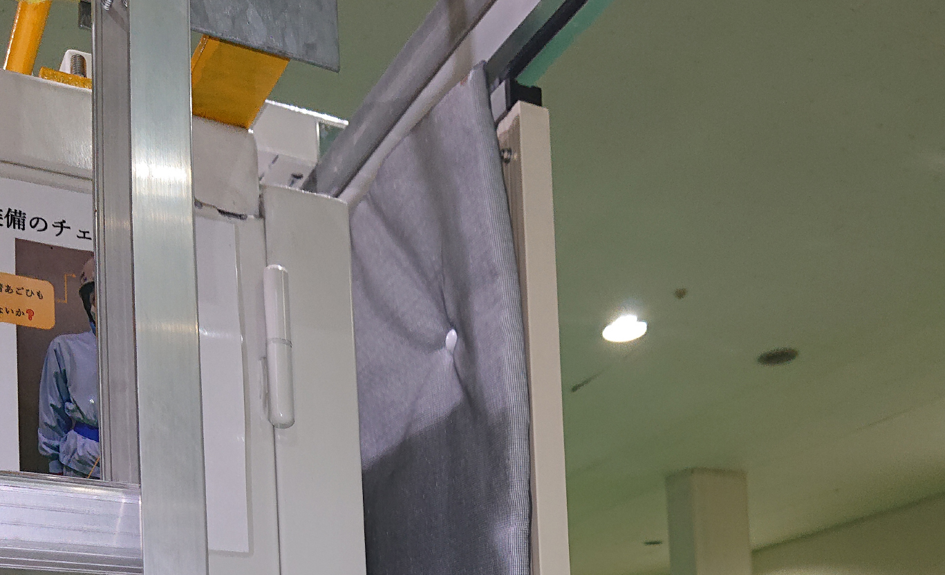 ・防音ボックス内部を点検できるように、透明塩ビカーテンを取り付けた。